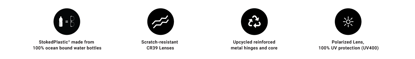 Using our award winning patented blend, StokedPlastic®, we are able to take water bottles found in the environment and use them to make our premium eyewear.